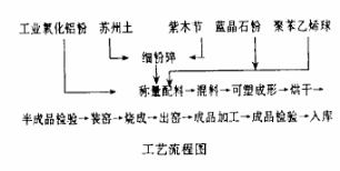 先加入聚苯乙烯球及粘土,攪拌均勻后再加入工業(yè)氧化鋁和藍晶石粉。先攪拌3分鐘,再徐徐加水攪拌(最佳加水量為28%~30%),待泥料成為均勻的可塑料后即可成形磚坯。