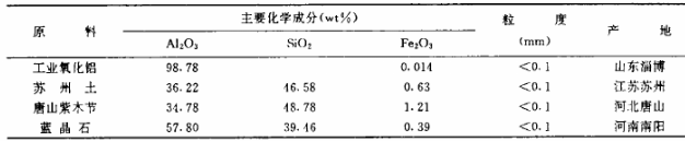 選用工業(yè)氧化鋁和蘇州土為主要原料,少量加入唐山紫木節(jié)和藍晶石。原料的化學組成見表1。